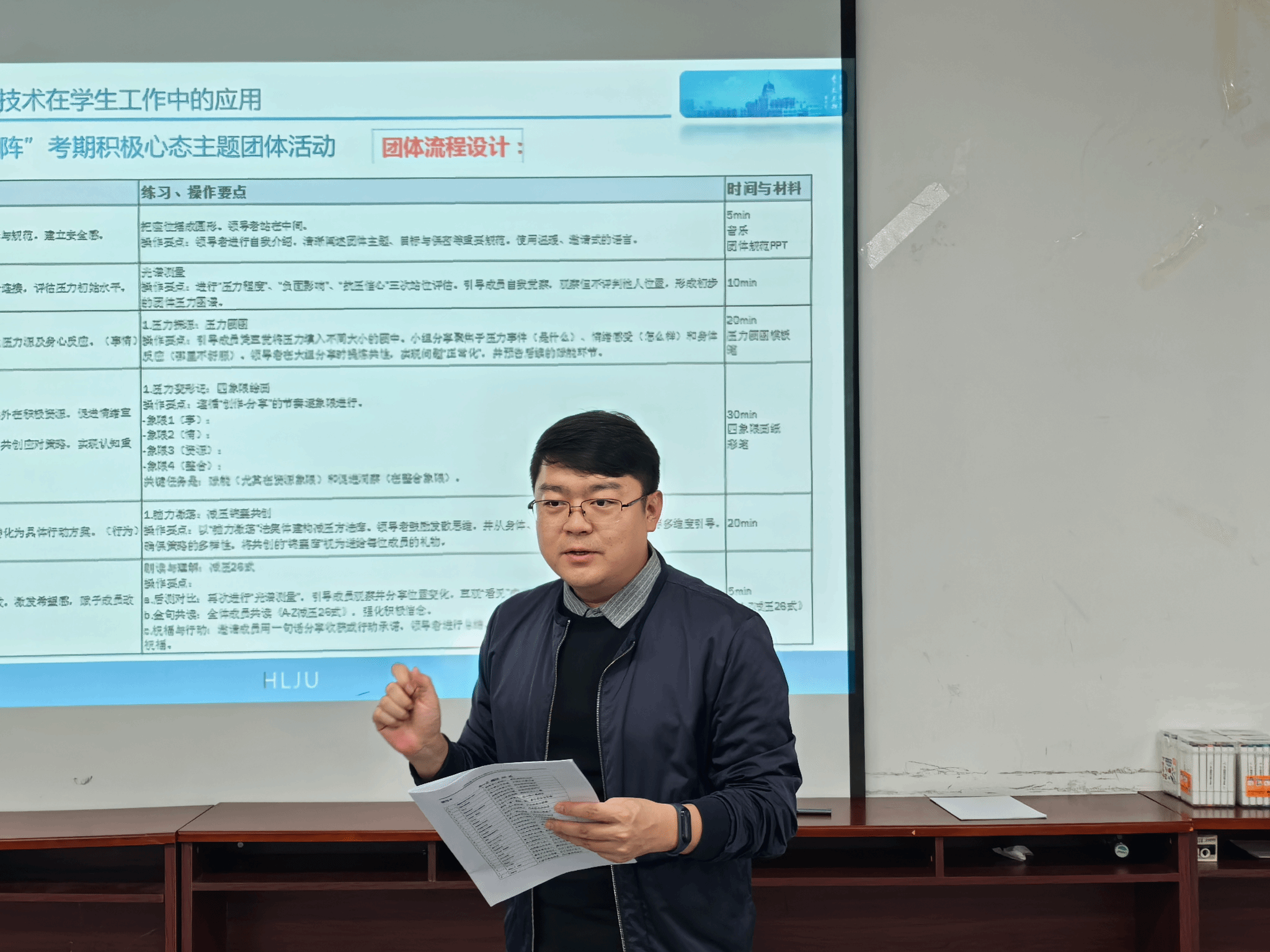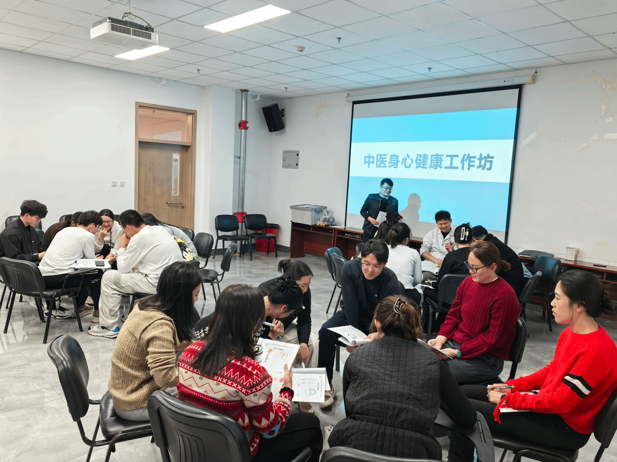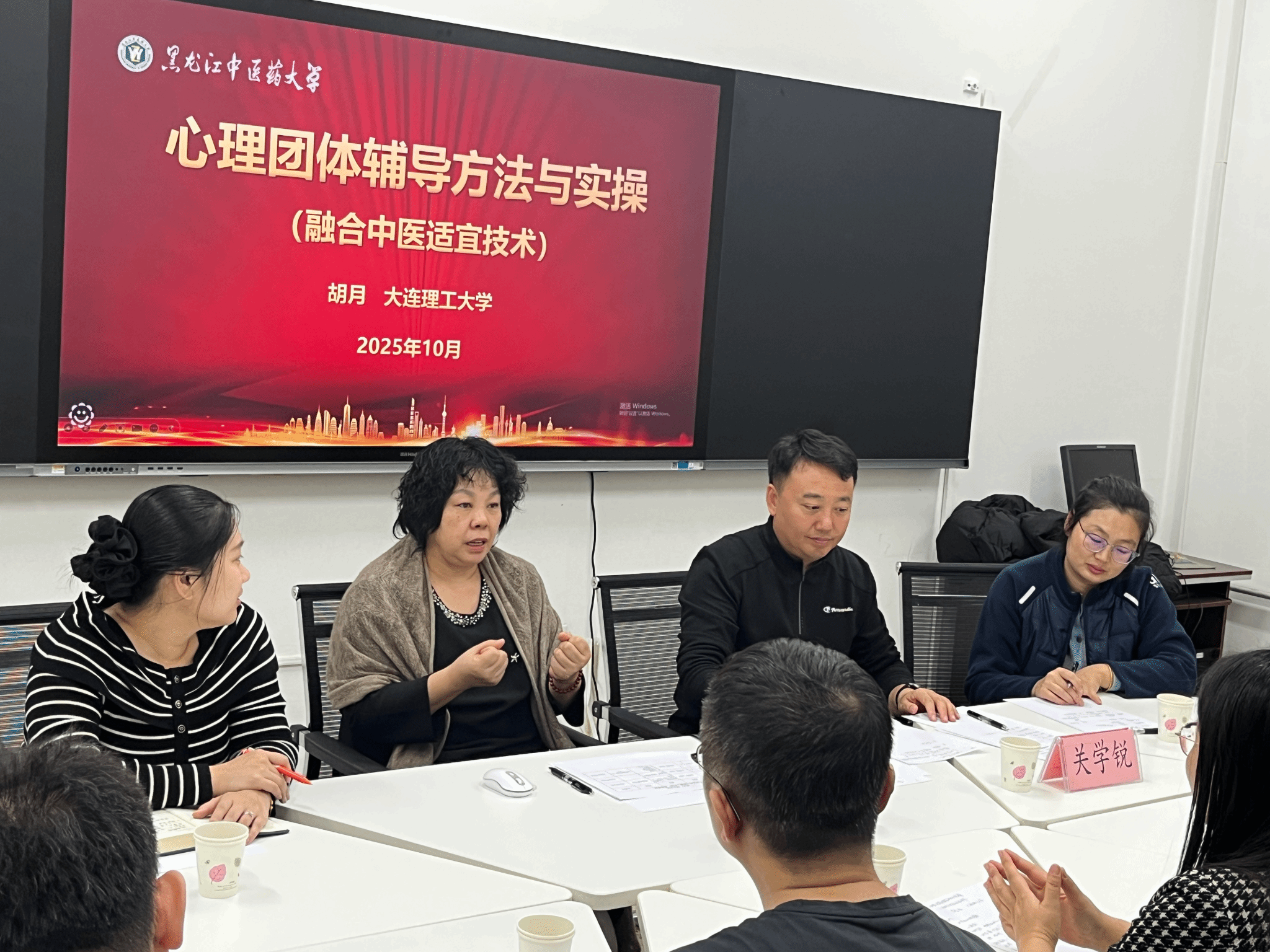 胡月以“开启中医身心健康之旅”为主题作辅导演练