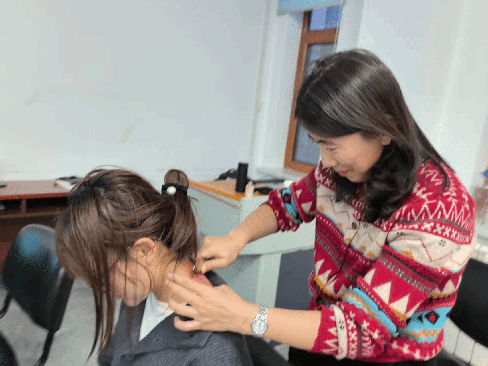 附属一院宫妍进行中医适宜技术(耳穴压豆)展示