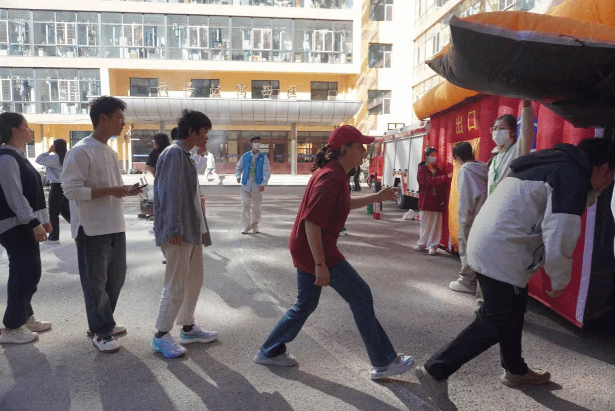 演练尾声,同学们还体验了消防模拟逃生舱,进一步熟悉逃生场景与技巧,为应对突发火灾积累实践经验。